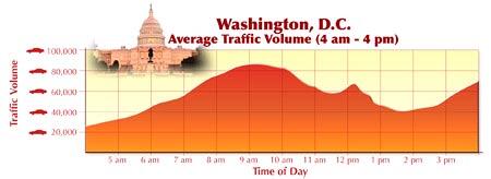 Primary Objective: Communicate the average traffic in Washington, D.C., between 4 a.m. and 4 p.m.
