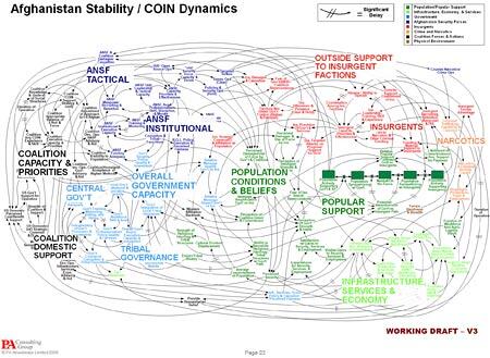 This slide accompanied The New York Times article titled, We Have Met the Enemy and He Is PowerPoint, by Elisabeth Bumiller. Part of a presentation to Gen. Stanley A. McChrystal and other officials, this graphic depicts the complexity of the American military strategy in Afghanistan. However, if the author of the slide intended to show how the strategy is convoluted and confusing, he succeeded, because no one in the room could follow it. After viewing this PowerPoint slide, the general commented, “When we understand that slide, we’ll have won the war.”