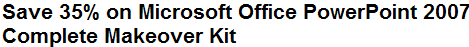 Don't miss this limited time 35% discount on Microsoft Office PowerPoint 2007 Complete Makeover Kit. Que, the publisher also includes Free Shipping for domestic orders. Isn't it time your presentations had their own makeover?