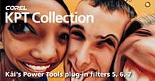 BackCorel has announced the new KPT Collection that includes a selection of all the powerful Kai's Power Tools plug-in filters of KPT 5, KPT 6 and KPT effects. The plug-in filters work with any image editor that can accept Photoshop plug-ins - these include Adobe Photoshop, Corel PhotoPaint and Painter, Microsoft Picture It! Digital Image Pro, Jasc Paint Shop Pro and many others. The KPT Collection retails for US$99 - more info.