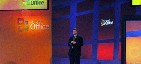 Microsoft Chairman, Bill Gates delivering his keynote at the Office 2003 System launch event at New York